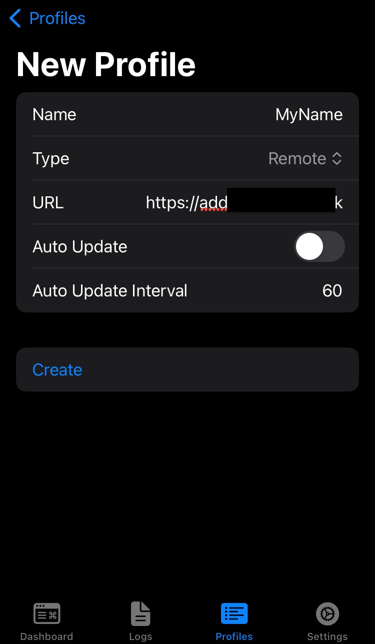 录入完以上字段后点击下面的Create按钮即可完成订阅创建。另外需要注意的是有的时候可能是这个软件本身的问题也可能是订阅地址服务的问题,会出现订阅失败,这时候首先确认你输入的订阅地址是否正确录入, 特别是问号和点号这些有没有错误用了全角或者多打了个空格,所以最好是直接复制粘贴而不要手动录入。如果确认地址录入没有问题,问题依旧存在,则可能要多试几次,或者过段时间再试。
