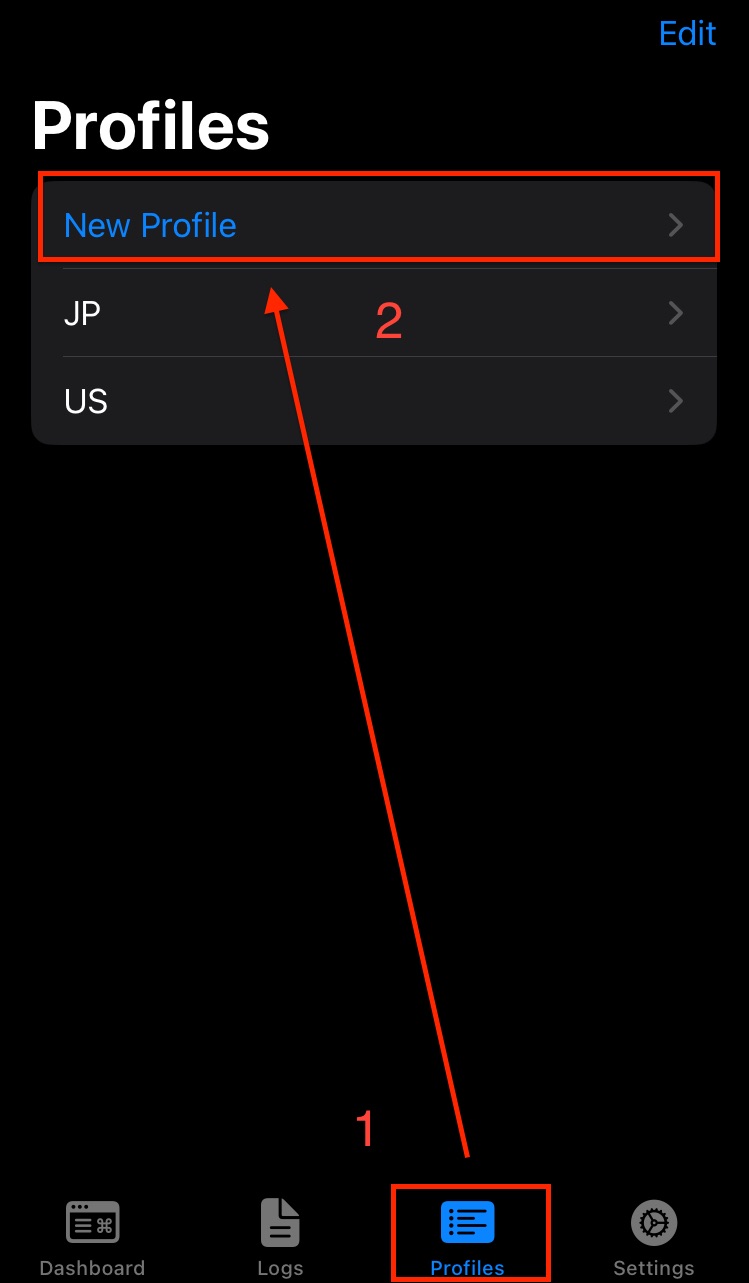点击底部的"Profiles",然后点击顶部的"New Profile"开始创建订阅,如下图: